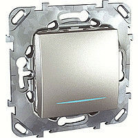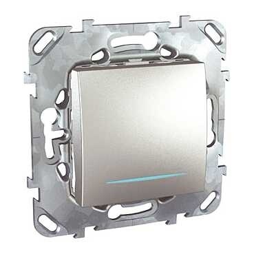 Выключатель одноклавишный Schneider Electric UNICA TOP (алюминий) с подсветкой предназначен для сетей до 250 В на ток до 10 А.