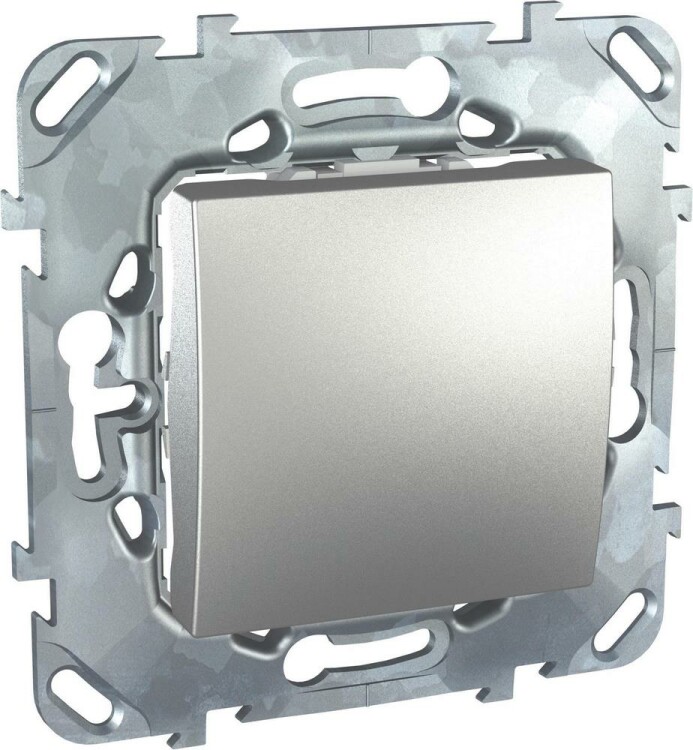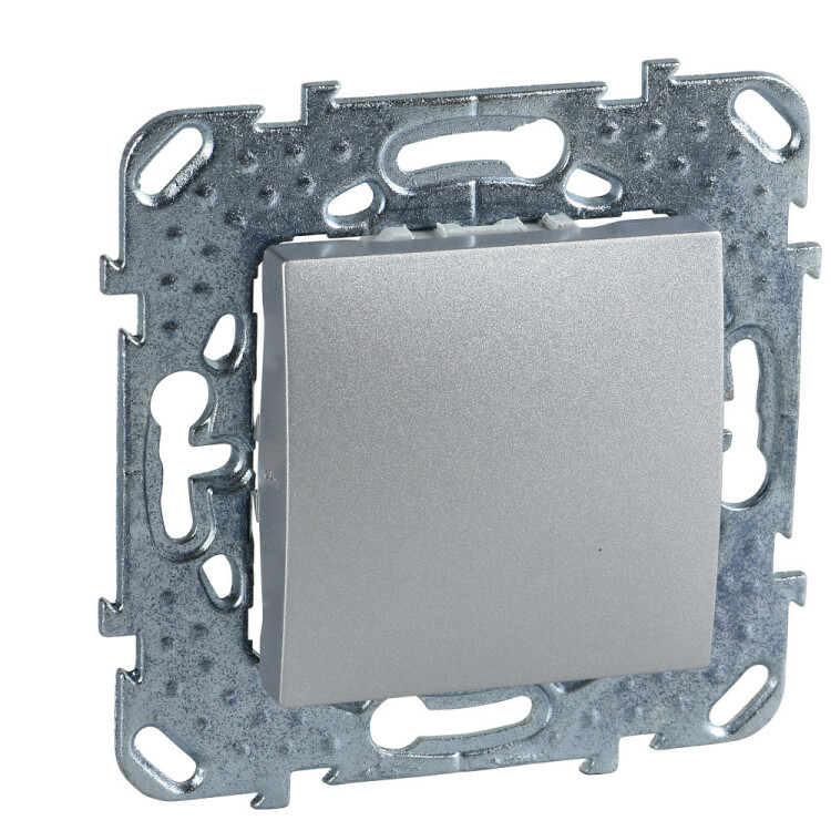 Переключатель одноклавишный Schneider Electric UNICA ТОР (алюминий) перекрёстный без подсветки предназначен для сетей до 250 В на ток до 10 А.