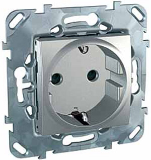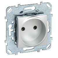 Розетка Schneider Electric UNICA TOP (алюминий) без заземления, со шторками предназначена для сетей до 250 В на ток до 16 А.