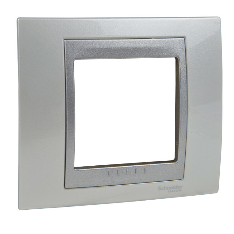 Рамка Schneider Electric UNICA TOP (нордик) одинарная с алюминиевой декоративной вставкой.