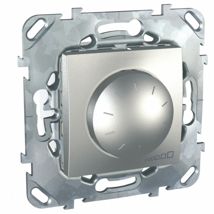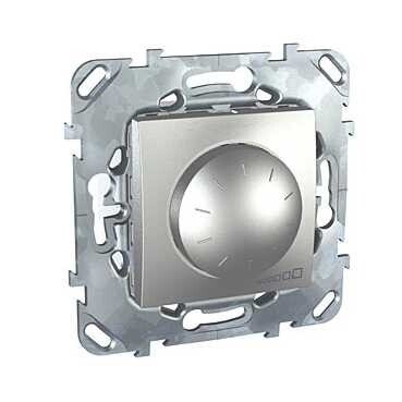 Диммер Schneider Electric UNICA ТОР (алюминий) повортно-нажимной для ламп накаливания и галогенных на номинальное напряжение до 10 В.
