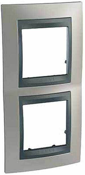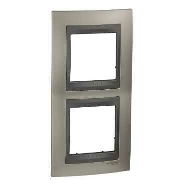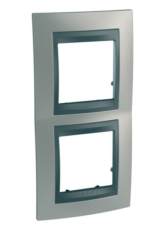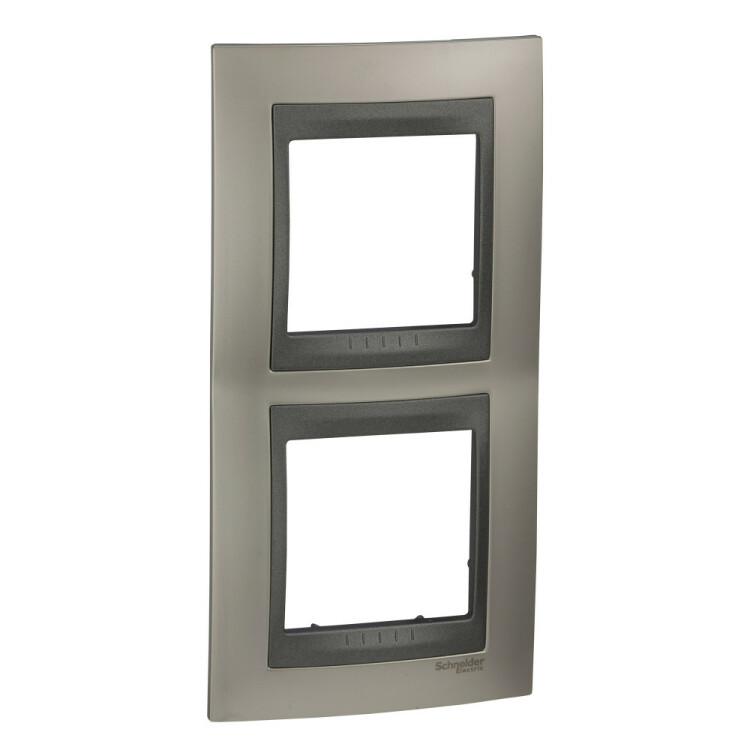 Рамка Schneider Electric UNICA TOP (никель) двухместная с графитовой декоративной вставкой.