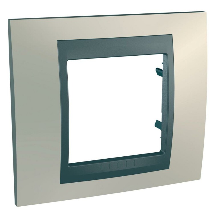 Рамка Schneider Electric UNICA TOP (опал) одинарная с графитовой декоративной вставкой.