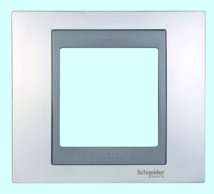 Рамка Schneider Electric UNICA TOP (хром матовый) одинарная с графитовой декоративной вставкой.