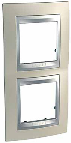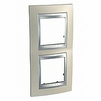 Рамка Schneider Electric UNICA TOP (опал) двухместная с алюминиевой декоративной вставкой.