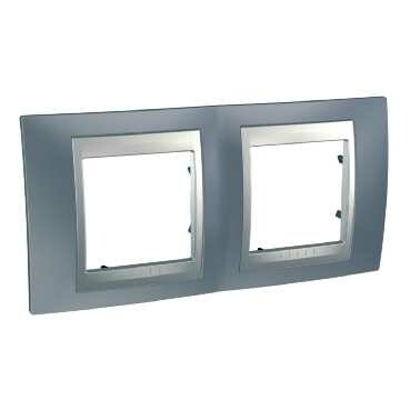 Рамка Schneider Electric UNICA TOP (грэй) двухместная с алюминиевой декоративной вставкой.