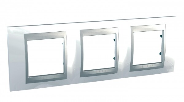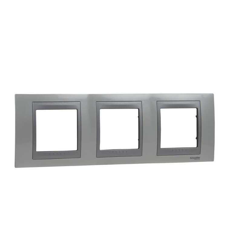 Рамка Schneider Electric UNICA TOP (нордик) трёхместная с алюминиевой декоративной вставкой.