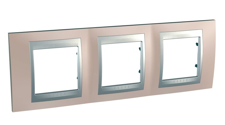 Рамка Schneider Electric UNICA TOP (оникс) трёхместная с алюминиевой декоративной вставкой.