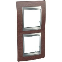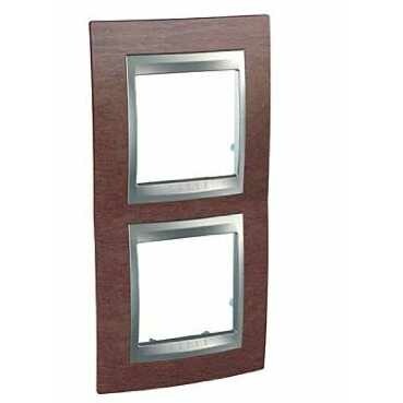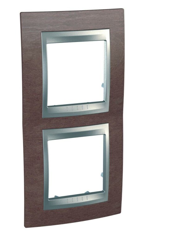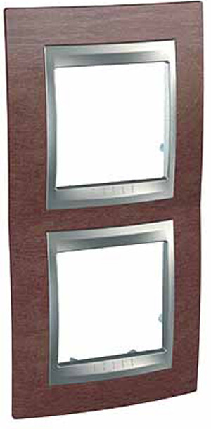 Рамка Schneider Electric UNICA TOP (табачное дерево) двухместная с алюминиевой декоративной вставкой.