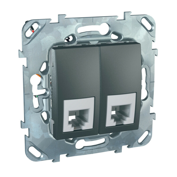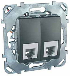 UNICA TOP РОЗЕТКА телефонная, RJ11, двойная, 4 контакта, ГРАФИТ (кр.10шт) C3(7)