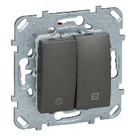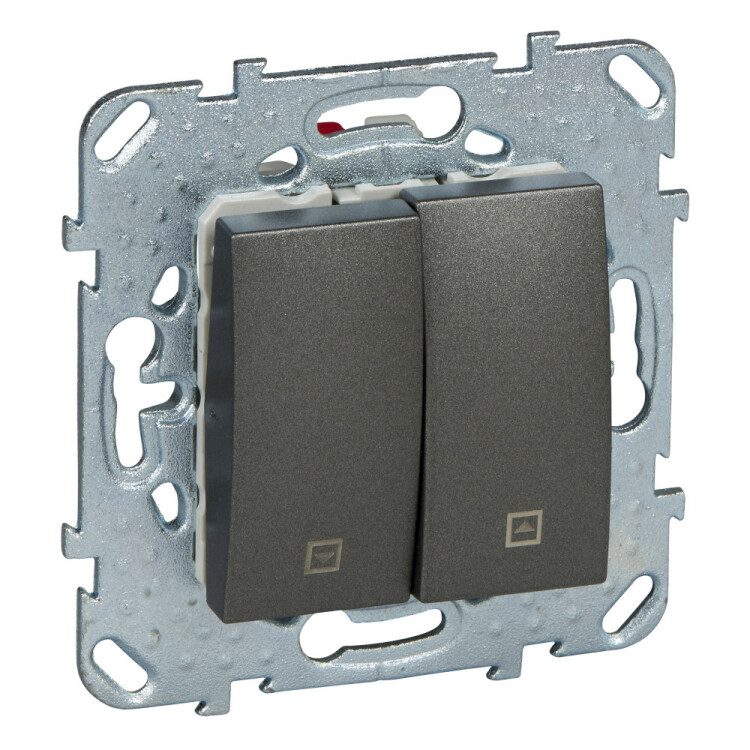 Выключатель двухклавишный для жалюзи Schneider Electric UNICA ТОР (графит) без подсветки, с фиксацией предназначен для сетей до 250 В на ток до 10 А.