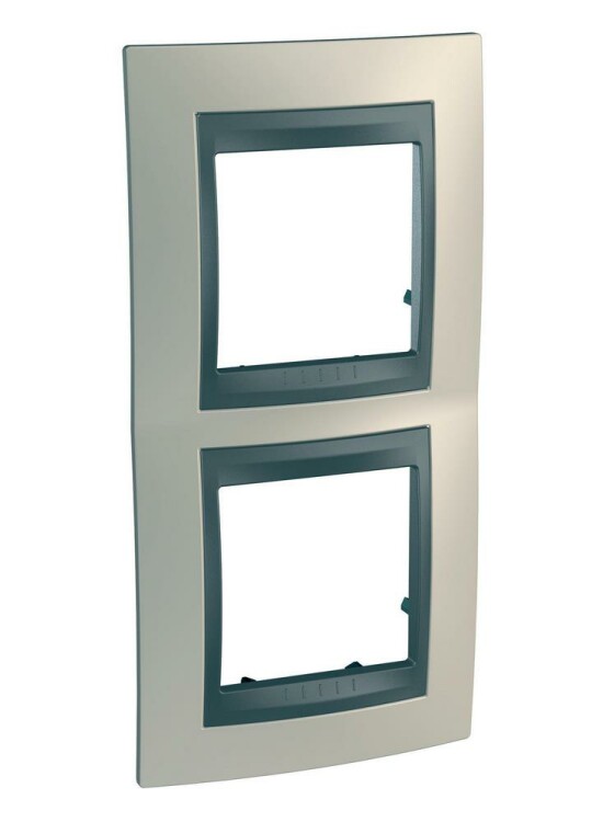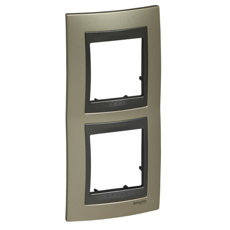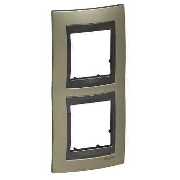 Рамка Schneider Electric UNICA TOP (опал) двухместная с графитовой декоративной вставкой.