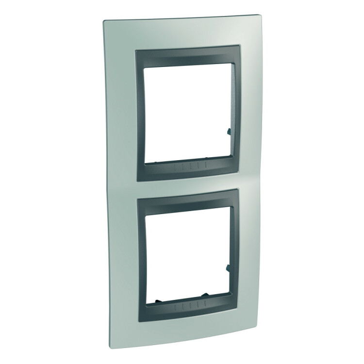 Рамка Schneider Electric UNICA TOP (флюорит) двухместная с графитовой декоративной вставкой.