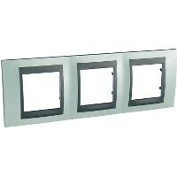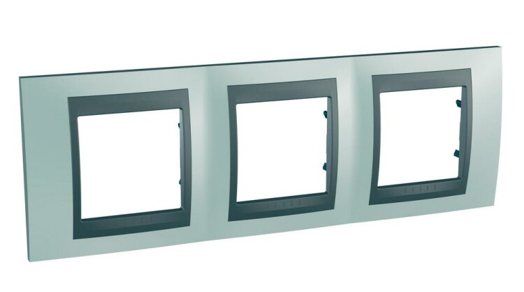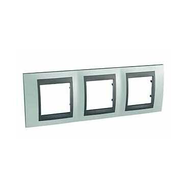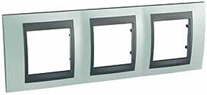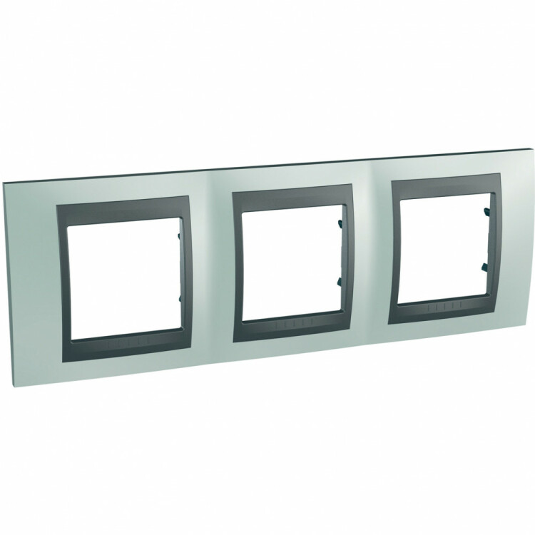Рамка Schneider Electric UNICA TOP (гром глнцевый) трёхместная с графитовой декоративной вставкой.