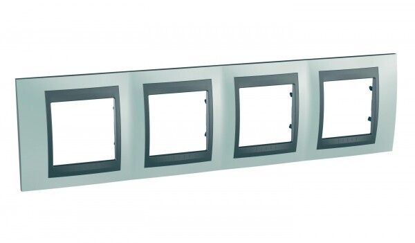 Рамка Schneider Electric UNICA TOP (флюорит) четырёхместная с графитовой декоративной вставкой.