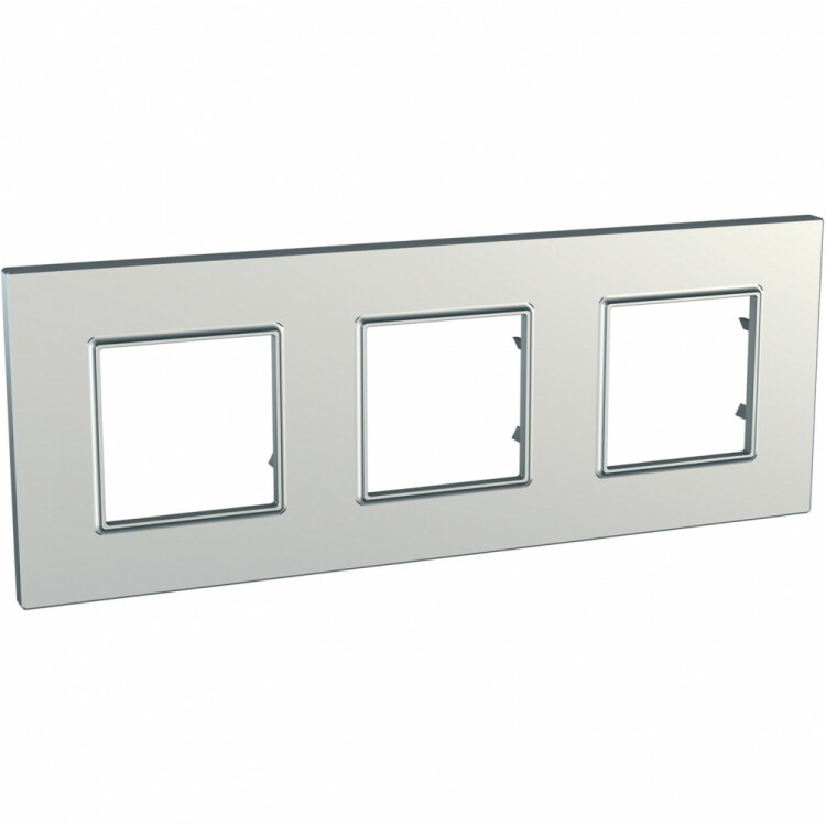 Рамка Schneider Electric UNICA QUADRO (серебро) трёхместная, устанавливается в вертикальном и горизонтальном положениях.