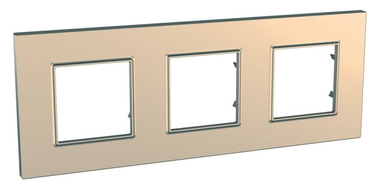 Рамка Schneider Electric UNICA QUADRO (медь) трёхместная, устанавливается в вертикальном и горизонтальном положениях.