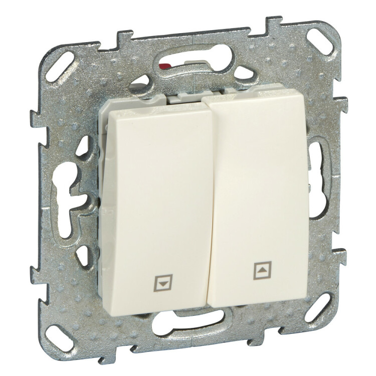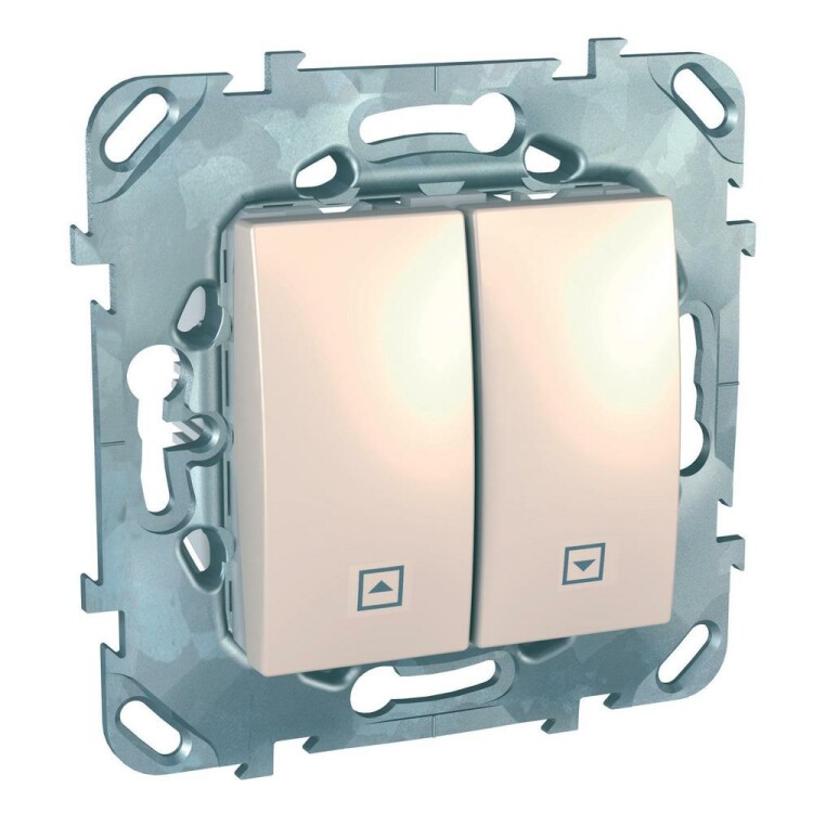 Выключатель двухклавишный для жалюзи Schneider Electric UNICA (бежевый) без подсветки предназначен для сетей до 250 В на ток до 10 А.