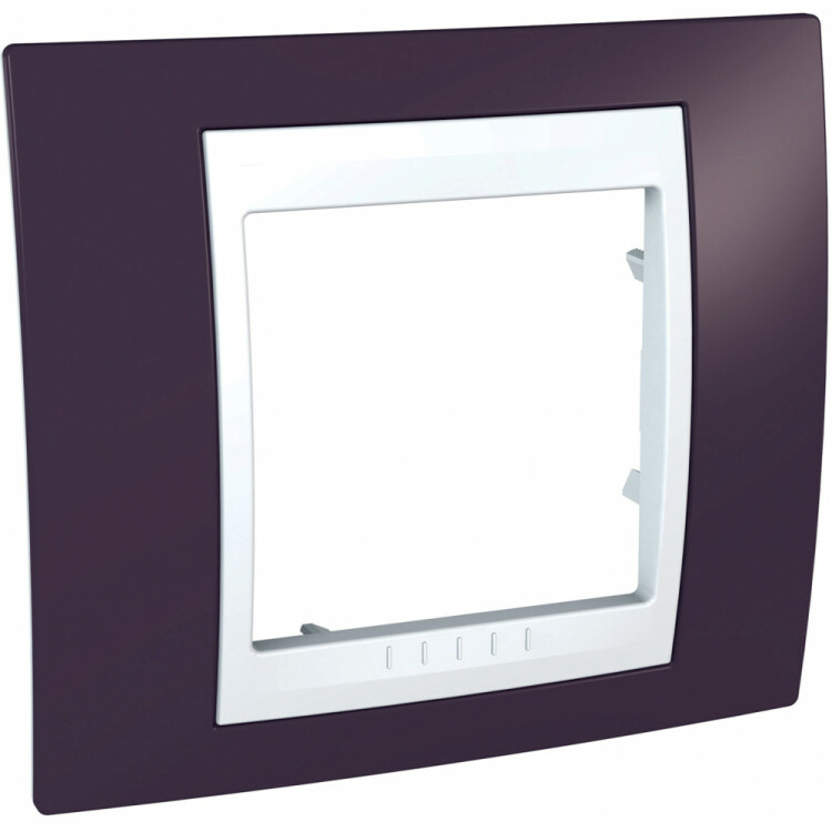 Рамка Schneider Electric UNICA ХАМЕЛЕОН (гранат) одинарная с белой декоративной вставкой.