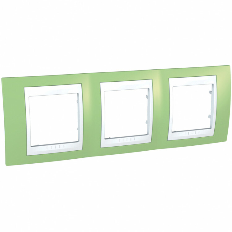Рамка Schneider Electric UNICA ХАМЕЛЕОН (зелёное яблоко) трёхместная с белой декоративной вставкой.