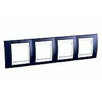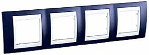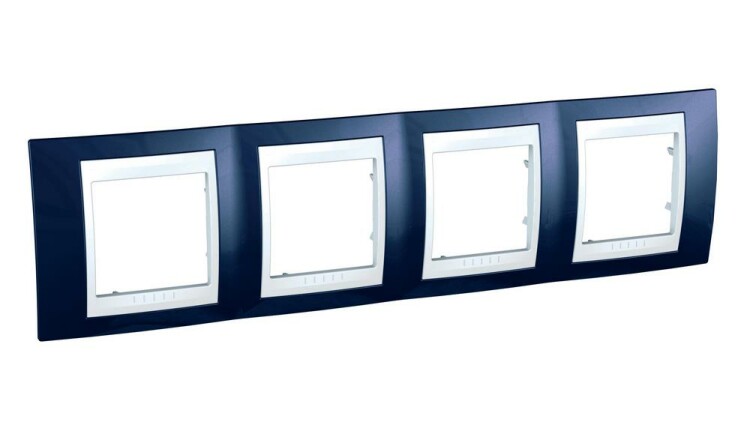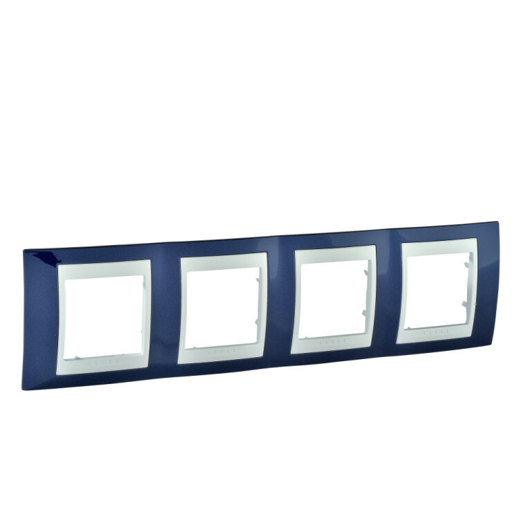 Рамка Schneider Electric UNICA ХАМЕЛЕОН (индиго) четырёхместная с белой декоративной вставкой.