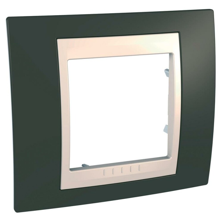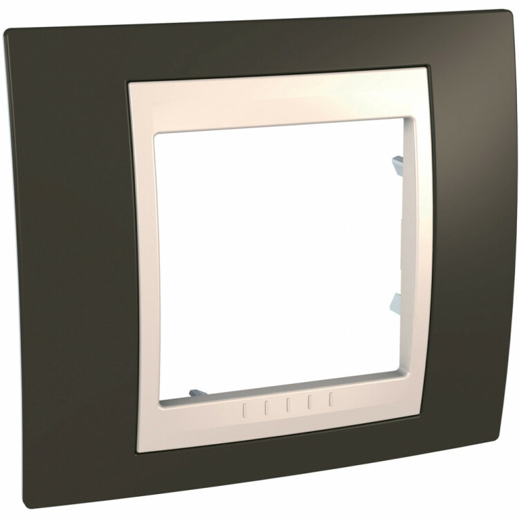 Рамка Schneider Electric UNICA ХАМЕЛЕОН (какао) одинарная с бежевой декоративной вставкой.