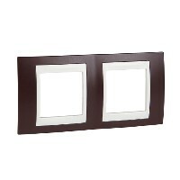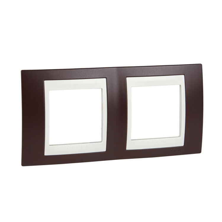 Рамка Schneider Electric UNICA ХАМЕЛЕОН (гранат) двухместная с бежевой декоративной вставкой.