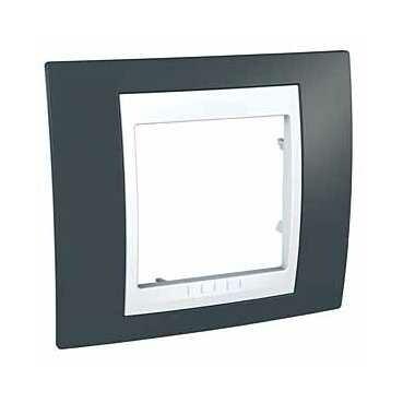 Рамка Schneider Electric UNICA ХАМЕЛЕОН (серо-зелёный) одинарная с белой декоративной вставкой.