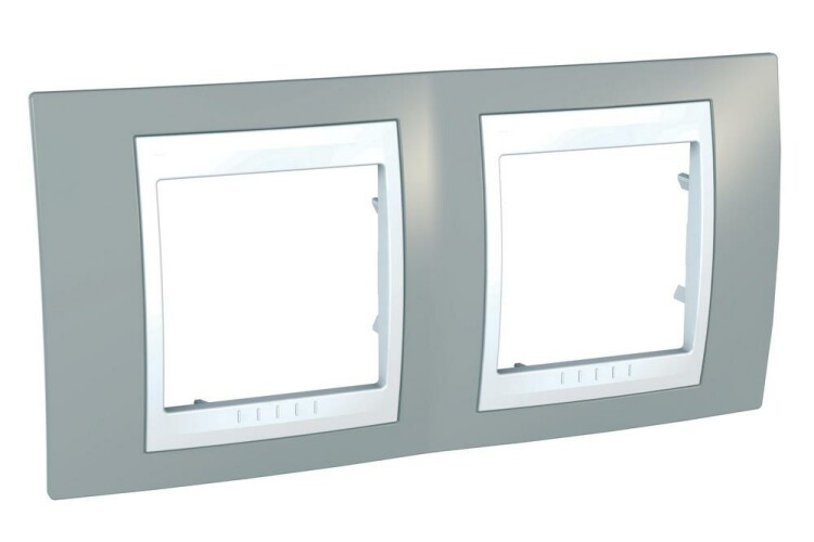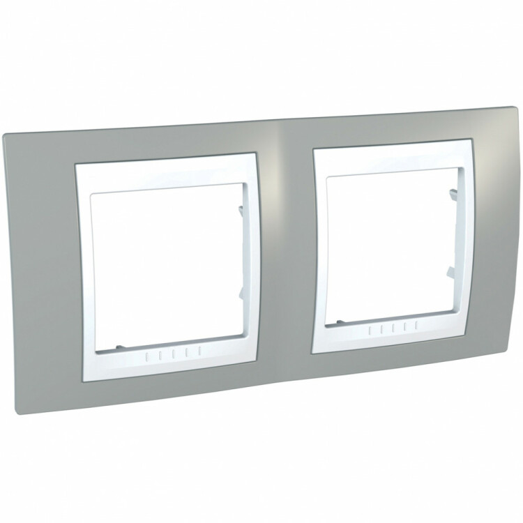 Рамка Schneider Electric UNICA ХАМЕЛЕОН (серый) двухместная с белой декоративной вставкой.