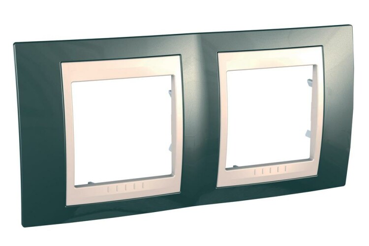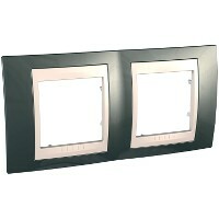 Рамка Schneider Electric UNICA ХАМЕЛЕОН (шампань) двухместная с бежевой декоративной вставкой.