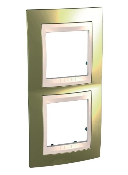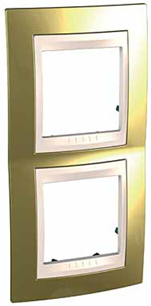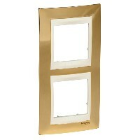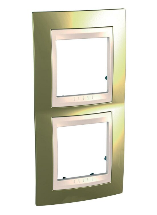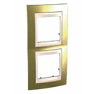 Рамка Schneider Electric UNICA ХАМЕЛЕОН (золото) двухместная с бежевой декоративной вставкой.