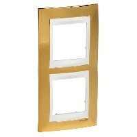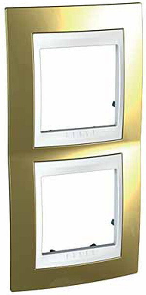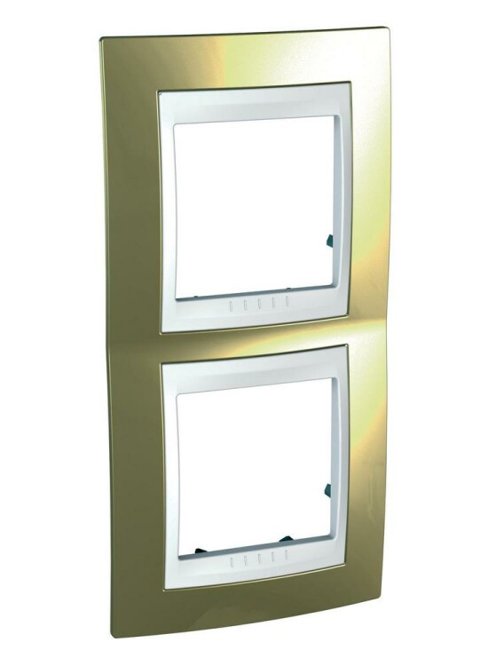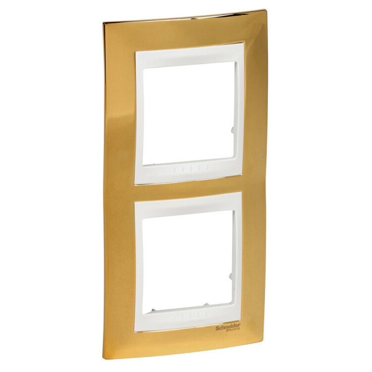 Рамка Schneider Electric UNICA ХАМЕЛЕОН (золото) двухместная с белой декоративной вставкой.