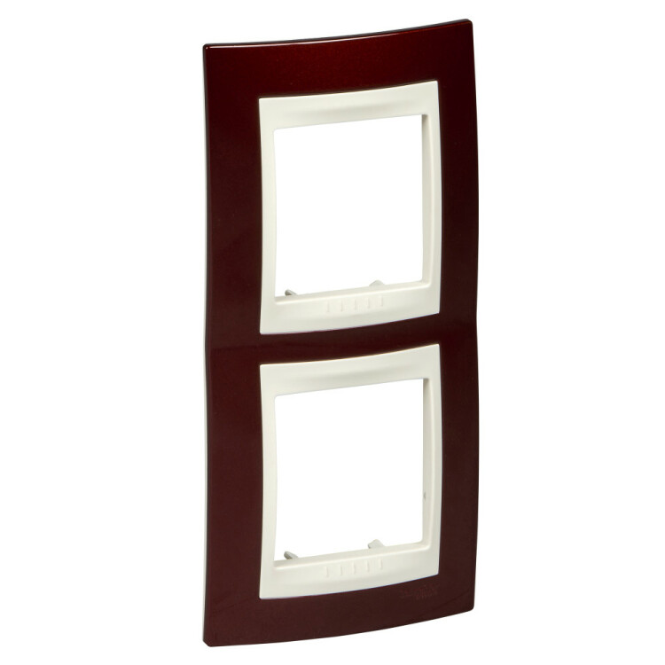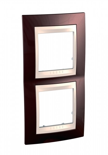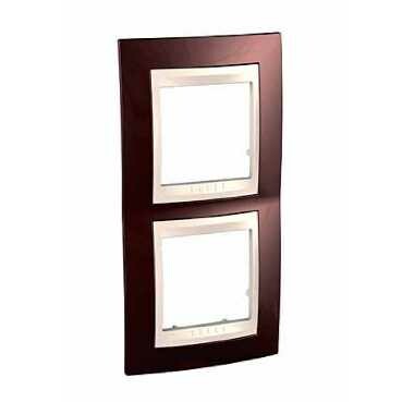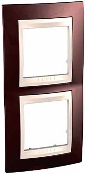Рамка Schneider Electric UNICA ХАМЕЛЕОН (терракотовый) двухместная с бежевой декоративной вставкой.