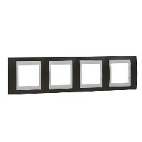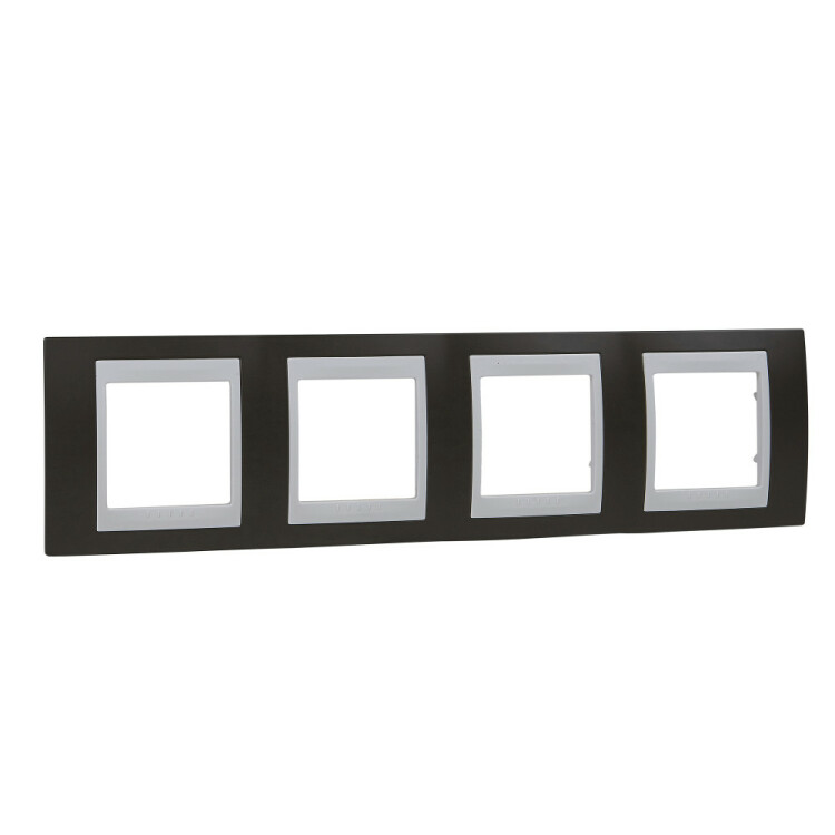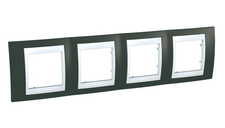 Рамка Schneider Electric UNICA ХАМЕЛЕОН (какао) четырёхместная с белой декоративной вставкой.