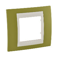 Рамка Schneider Electric UNICA ХАМЕЛЕОН (фисташковый) одинарная с бежевой декоративной вставкой.