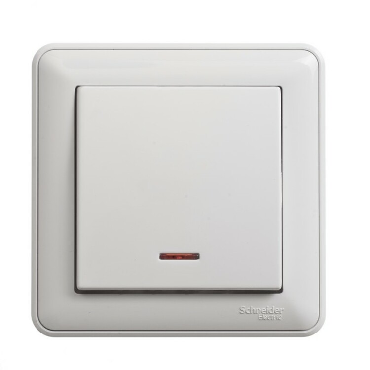 Выключатель Schneider Electric W59 (в сборе, цвет белый) 1-клавишный с подсветкой подходит для сетей 250 В, на ток до 16 А.