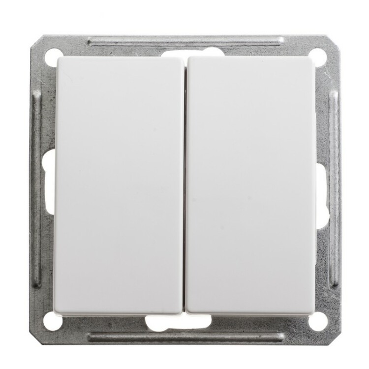 Механизм Schneider Electric W59 (цвет белый) выключателя 2-клавишного подходит для сетей 250 В, на ток до 16 А.