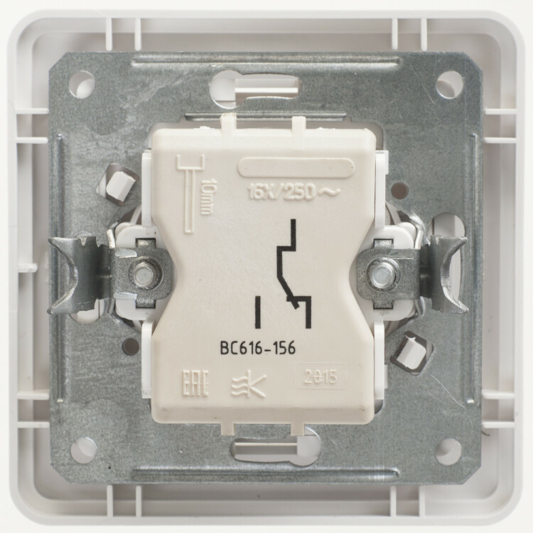 Переключатель Schneider Electric W59 (в сборе, цвет белый) 1-клавишный подходит для сетей 250 В, на ток до 16 А.
