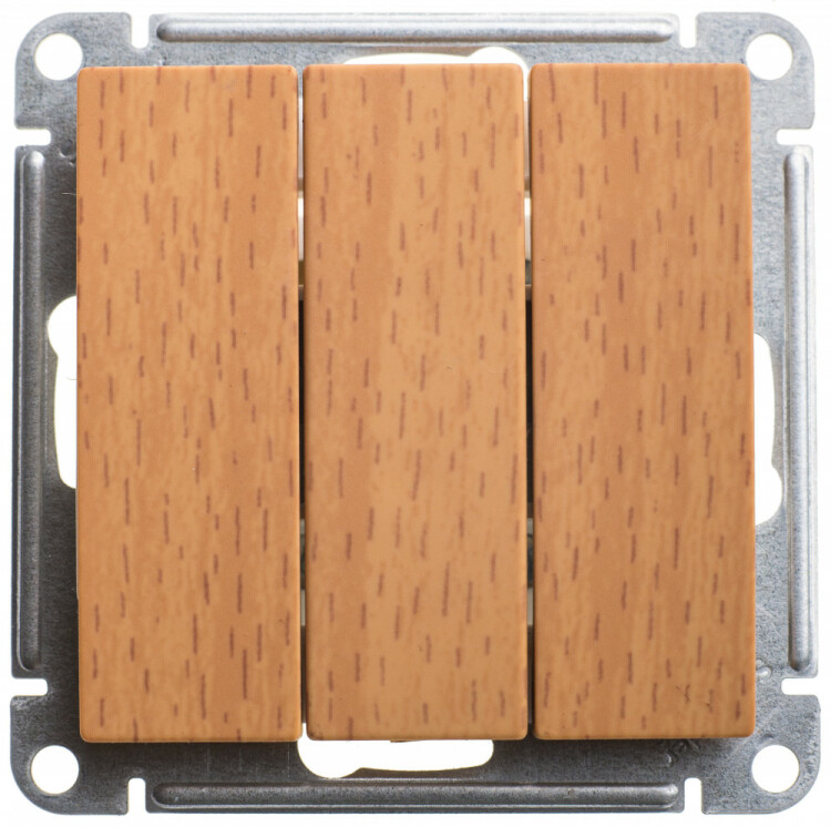 Механизм Schneider Electric W59 (цвет бук) выключателя 3-клавишного подходит для сетей 250 В, на ток до 16 А.