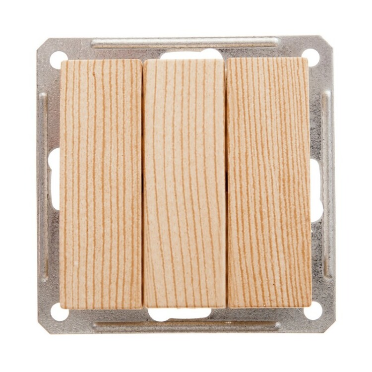 Механизм Schneider Electric W59 (цвет сосна) выключателя 3-клавишного подходит для сетей 250 В, на ток до 16 А.
