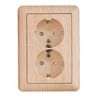 Розетка Systeme Electric (ранее Schneider Electric) W59 (в сборе, цвет сосна) двойнаяс заземлением и шторками подходит для сетей 250 В, на ток 16 А.