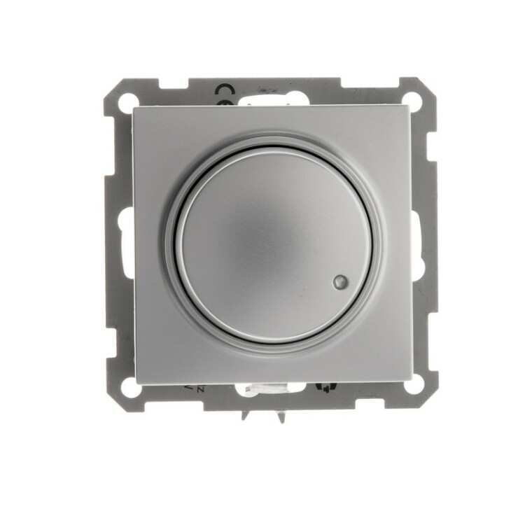 Механизм Schneider Electric W59 (цвет матовый хром) светорегулятора универсальный предназначен для сетей до 230 В для галогенных и ламп накаливания на мощность до 600 Вт.