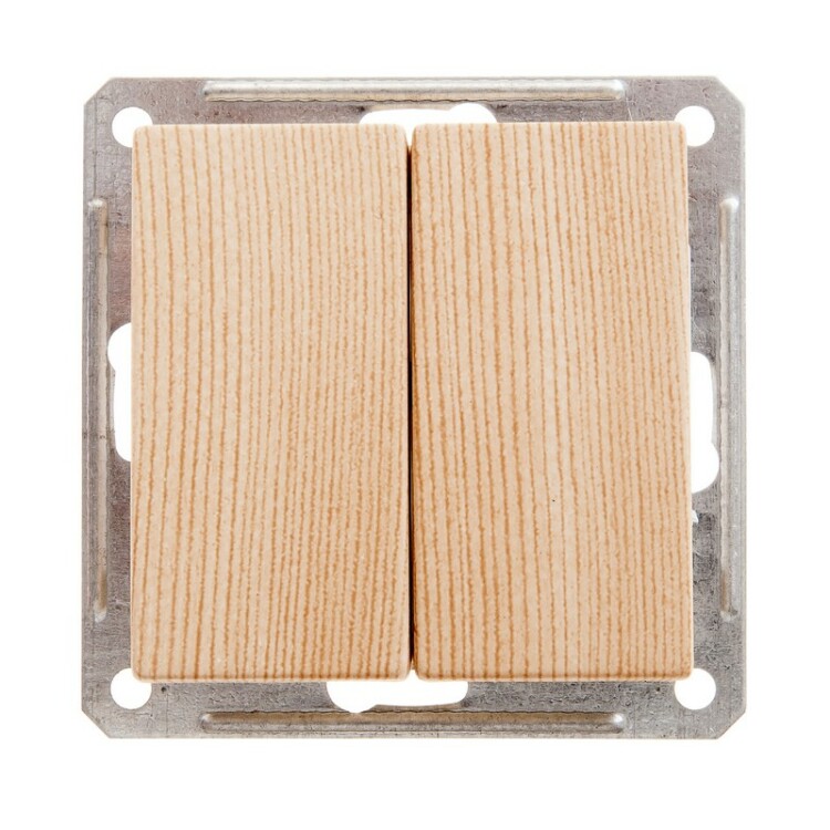 Механизм Schneider Electric W59 (цвет сосна) выключателя 2-клавишного подходит для сетей 250 В, на ток до 16 А.