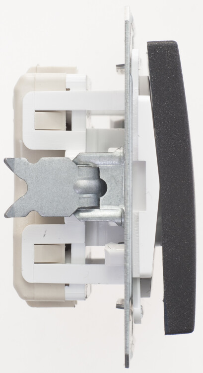 Механизм Schneider Electric W59 (цвет чёрный бархат) выключателя 1-клавишного двухполюсного подходит для сетей 250 В, на ток до 16 А.