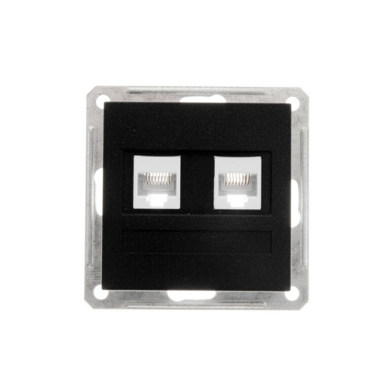 W59 Розетка двойная компьютерная RJ45 категория 5E, механизм, черный бархат. диапазон: W59 - тип устройства или его аксессуаров: 2-я компьютерная розетка - область применения: связь - комплектация изделия: механизм в сборе - тип экрана кабеля: U/UTP. Преимущества: Под стать характеру, Доступная цена, Современный дизайн, Безопасность монтажа и эксплуатации, Надежная установка в любые монтажн ые коробки, Большой выбор функциональных возможностей и цветовых сочетаний, Поставка изделий как без рамок – механизмы с лицевыми панелями, так и в сборе – готовое решение, Соответствие ГОСТ Р, Удобная упаковка.. применения: - Для недорогого ремонта, Для офисов класса В, Для гостиниц..