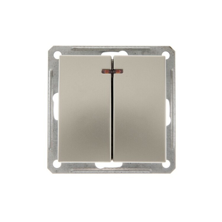 Механизм Schneider Electric W59 (цвет шампань) выключателя 2-клавишного с подсветкой подходит для сетей 250 В, на ток до 16 А.