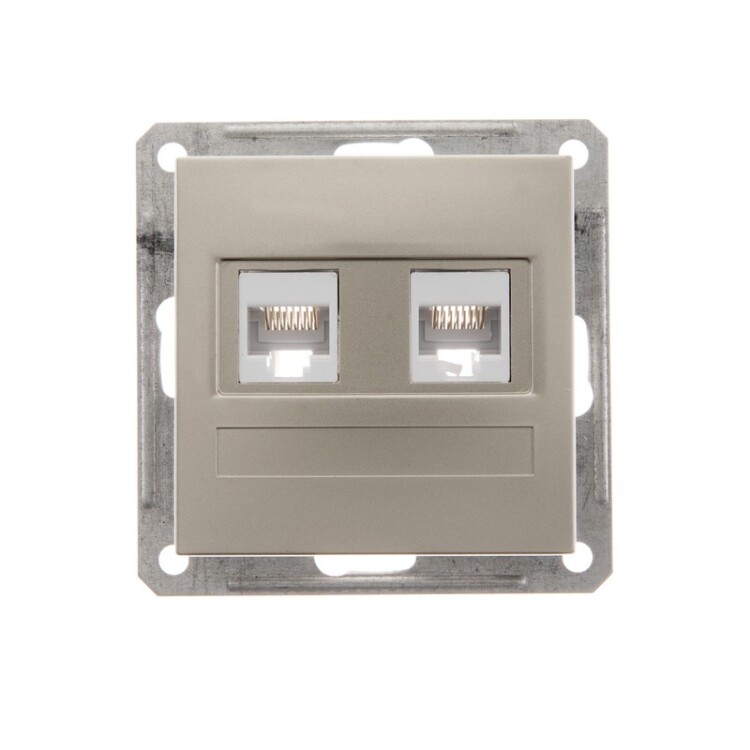 W59 Розетка двойная компьютерная RJ45 категория 5E, механизм, шампань. диапазон: W59 - тип устройства или его аксессуаров: 2-я компьютерная розетка - область применения: связь - комплектация изделия: механизм в сборе - тип экрана кабеля: U/UTP. Преимущества: Под стать характеру, Доступная цена, Современный дизайн, Безопасность монтажа и эксплуатации, Надежная установка в любые монтажные кор обки, Большой выбор функциональных возможностей и цветовых сочетаний, Поставка изделий как без рамок – механизмы с лицевыми панелями, так и в сборе – готовое решение, Соответствие ГОСТ Р, Удобная упаковка.. применения: - Для недорогого ремонта, Для офисов класса В, Для гостиниц..