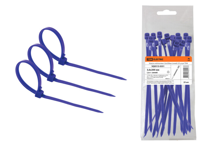 Хомуты нейлоновые 3,6х200мм (синий) (25 штук) TDM (кр.20упак)