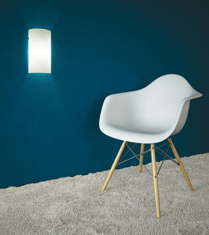 Настенный светодиодный светильник, создающий диффузное освещение. Рассеиватель из выдувного трехслойного опалового стекла ручной работы. Установочная плата из окрашенного белой матовой краской металла.