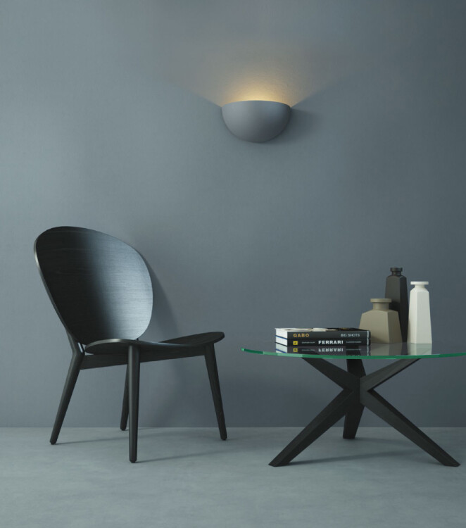 Настенный светильник отраженного света. Корпус изготовлен из гипса, установочная металлическая плата окрашена белой краской. Допускается покраска гипсовой поверхности светильника после ее обработки грунтовкой.
